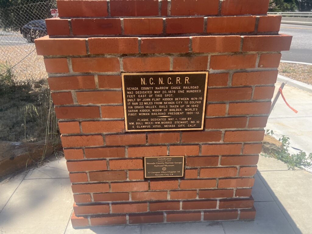 The Nevada County Narrow Gauge Railroad was built by John Flint Kidder between 1874-76. It ran 22 miles from Nevada City to Colfax via Grass Valley. Rails taken up in 1942. Sarah Kidder, the widow of the builder was the world’s first woman railroad president 1901-13.